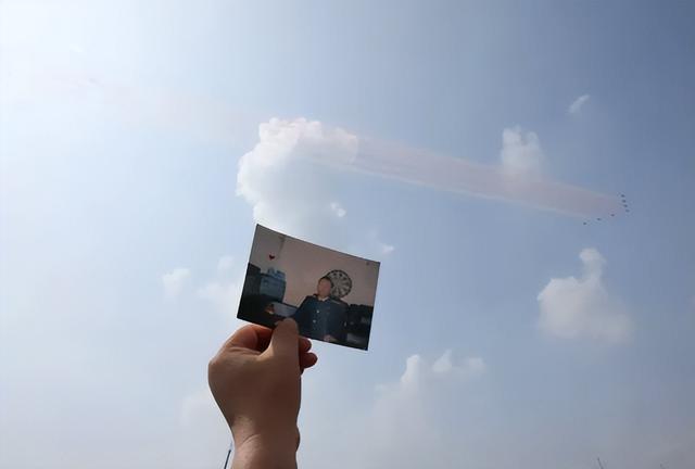 看着战机飞过蓝天的时候,她默默举起了王伟的照片,让丈夫也看到了国家现在的成就。