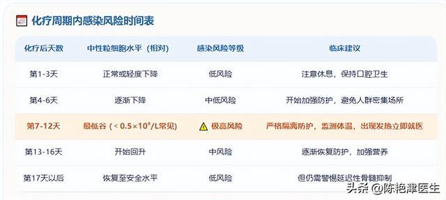 美国癌症学会和美国临床肿瘤学会都指出,化疗、放疗会让白细胞,特别是中性粒细胞下降,身体抵抗感染的能力会明显变弱;而且白细胞最低的高风险期,常常就在化疗开始后7到12天。这时候普通人扛得住的感冒、流感、肺部感染,对肿瘤患者可能就不是“小毛病”了。