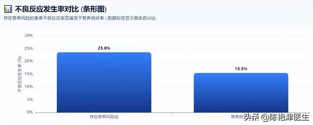 来自 《中国临床肿瘤学会恶性肿瘤患者营养治疗指南(2024)》 引用的前瞻性观察研究:在2248例患者中,存在营养风险的人,抗肿瘤治疗期间不良反应发生率是23.6%;营养情况相对较好的人是15.5%。表面上只差了8.1个百分点,但换成相对风险,已经高出不少。说白了,营养差的患者,不是更能扛,而是更容易扛不住治疗。